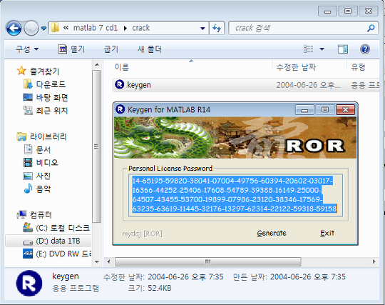 참고로 내 경로는 C:\Users\??\Downloads\Matlab7\matlab7 cd2 이다.