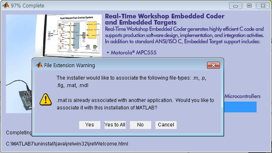 Yes to All을 눌러서 m,p,fig,mat,mdl의 확장자는 Matlab에 귀속되게끔 한다.